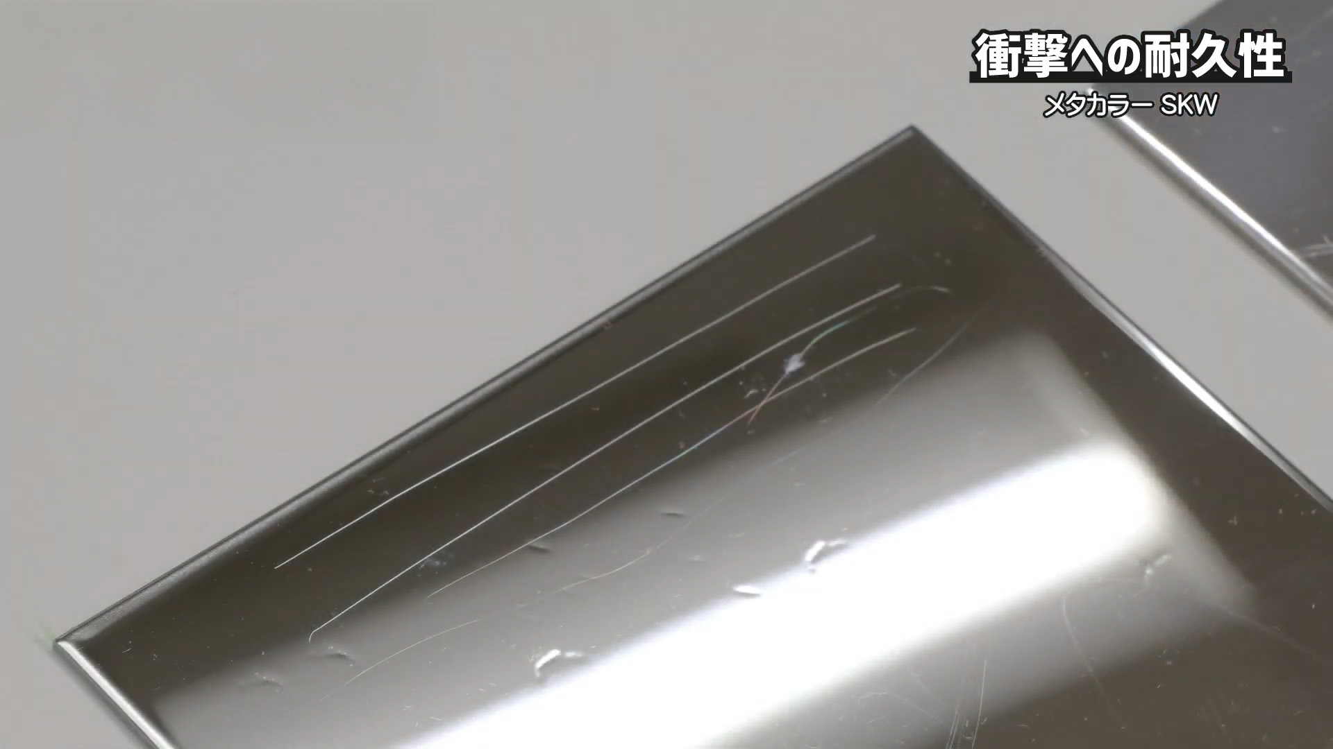 - メタカラー:へこむが割れない、衝撃で歪む