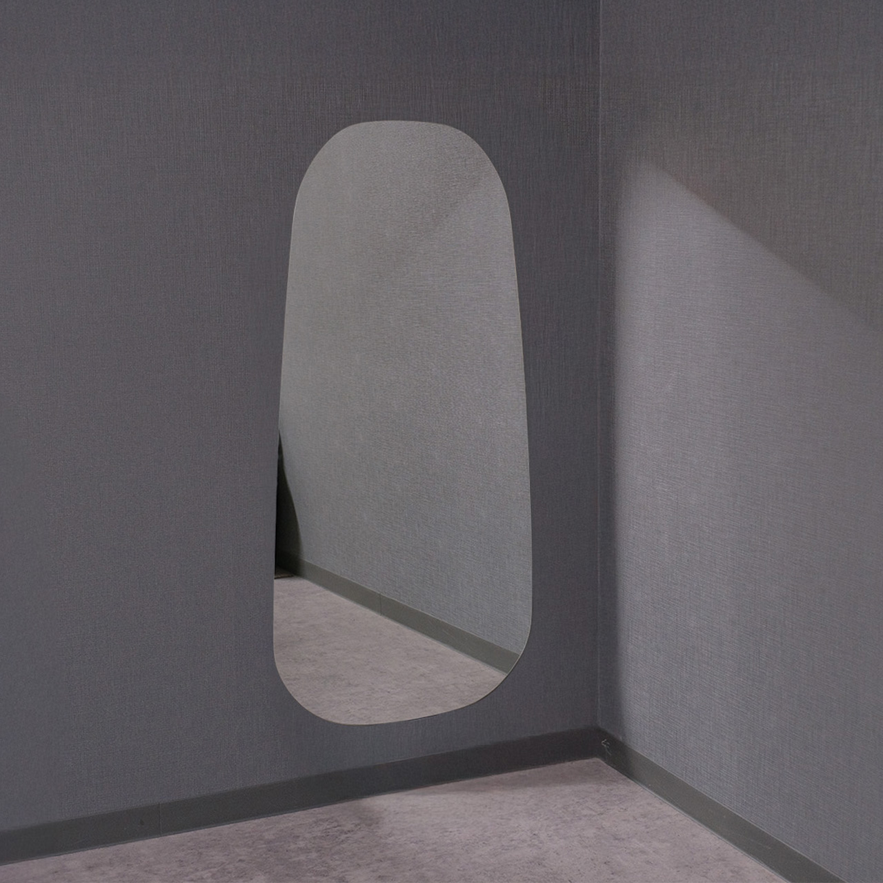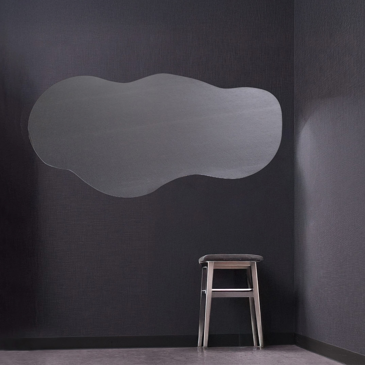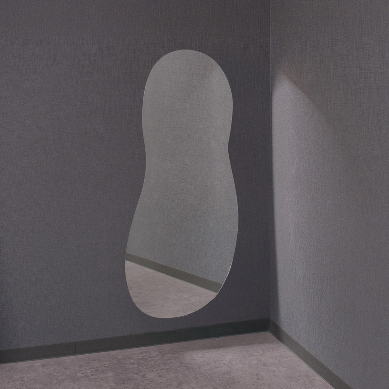 水たまりや雲の形のようなランダムな曲線デザインの縦長のウェーブミラー「クラウド」です。