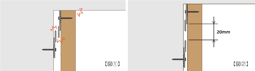 【図②】可能な限り上に取り付けたいという場合は、20mm程度下側になるように取り付けてください。