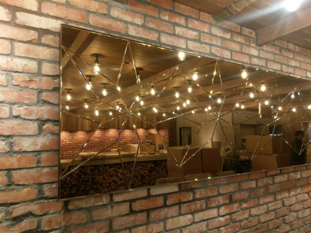 コンビネーションミラーは、幅広面磨き(ベベリング加工)された鏡を突付けで貼り合せたミラーです。