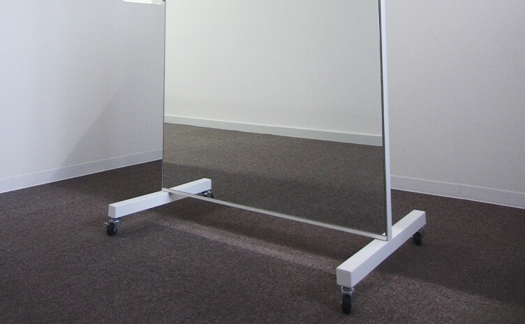 キャスターを取り付けることで、パネルミラーの移動が簡単に行えます。